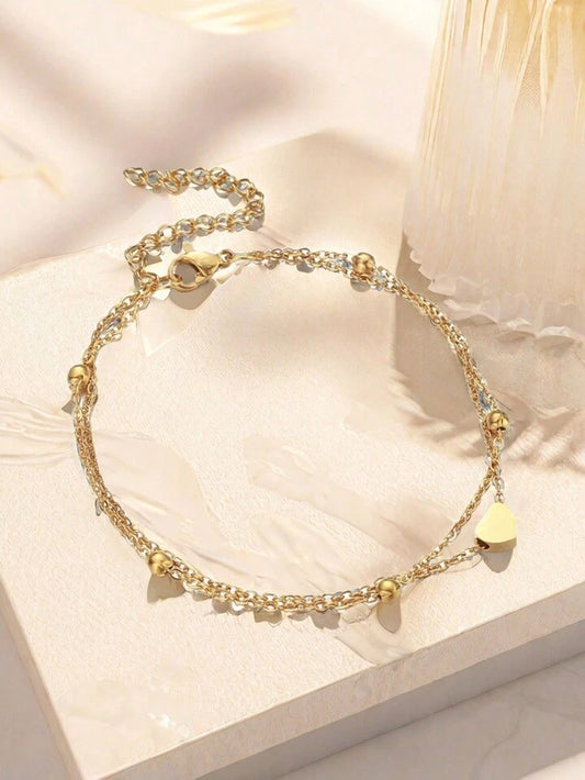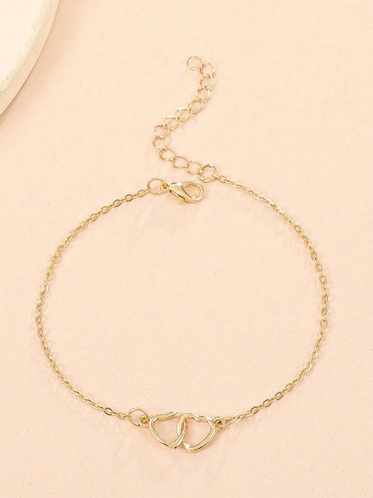 1pc Simple Double Love Foot Chain Female Personality And Temperament Interlocking Hollow Heart Shaped Foot Chain Beach Suitable For Couple Vacation