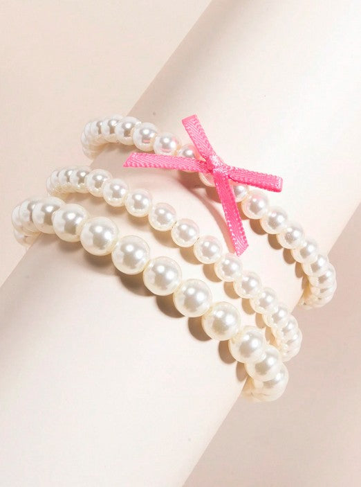 3pcs/Set Elegant Pearl & Bowknot Multilayer Beaded Bracelet Suit, High-End Fashion Jewelry For Women, Suitable For Daily Wear, Weddings, Parties, Gift For Loved Ones