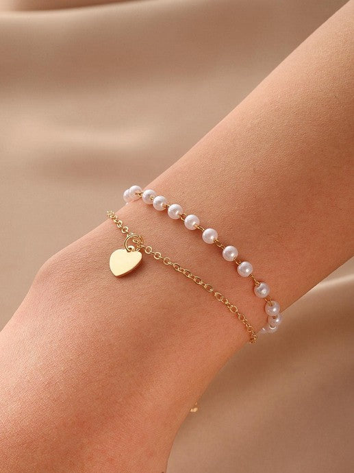 Faux Pearl Decor Heart Charm Bracelet Valentines