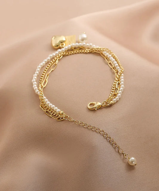 Gold Metal Alloy Pearl Graphic Love Tassel Charm Bracelet
