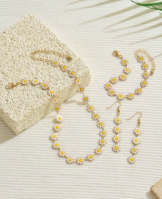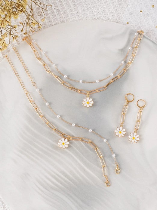1pair Sunflower Design Earrings & 1pc Necklace Valentines