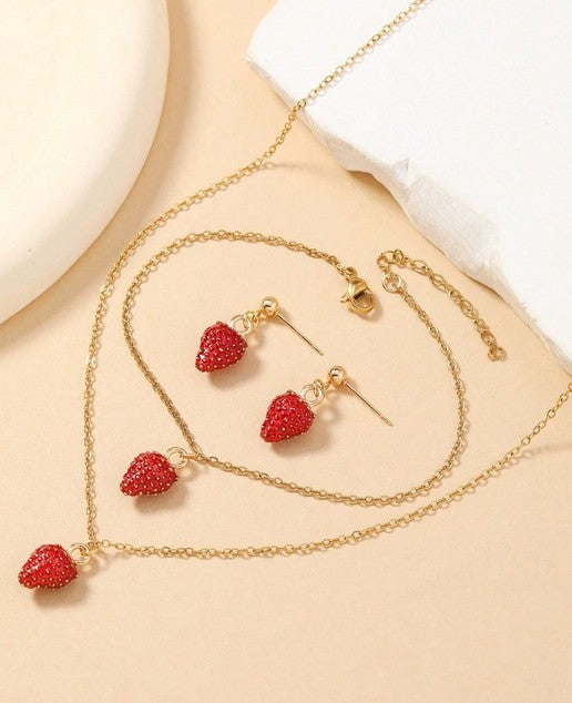 4pcs/Set Delicate Necklace & Bracelet Combination With Simple Earrings, Cute Cherry Vacation Style Jewelry Set. Perfect Graduation Gift For Women's Casual Parties.