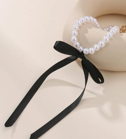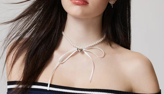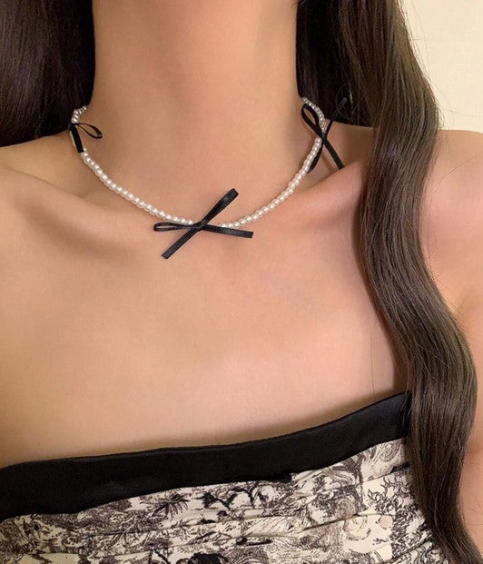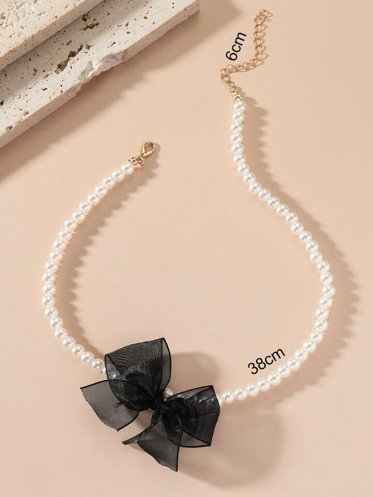 1pc French Vintage white Style Ribbon Bow Tie Faux Pearl Collarbone Necklace For Women Diy Jewelry Accessory