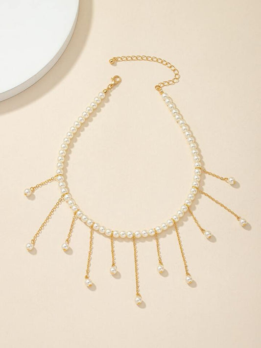 Lace Bow Decor Faux Pearl Beaded Necklace