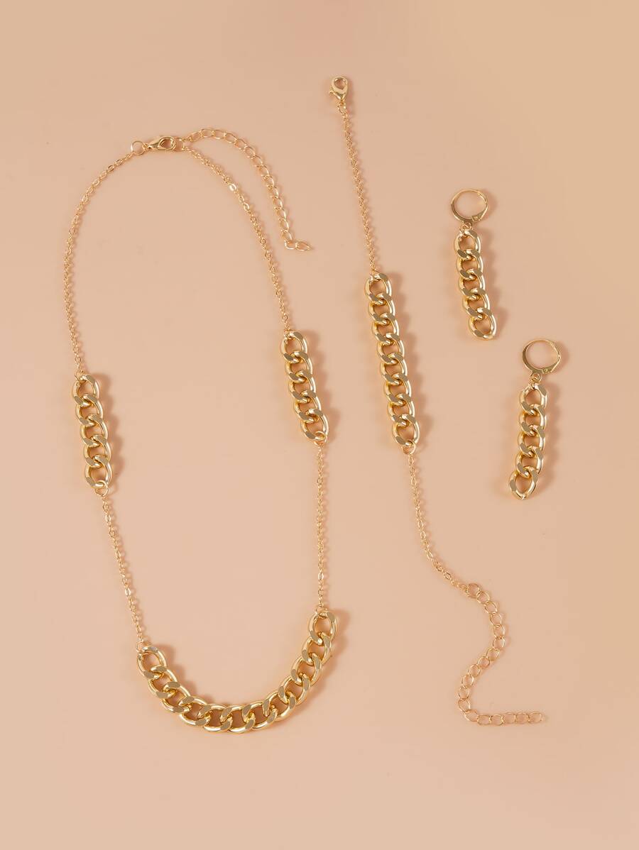 2pcs/set Chic Gold Tone Stainless Steel Cross Design Necklace And Bracelet For Women's Daily & Party Wear