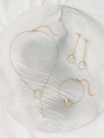 4pcs Faux Pearl Decor Jewelry Set